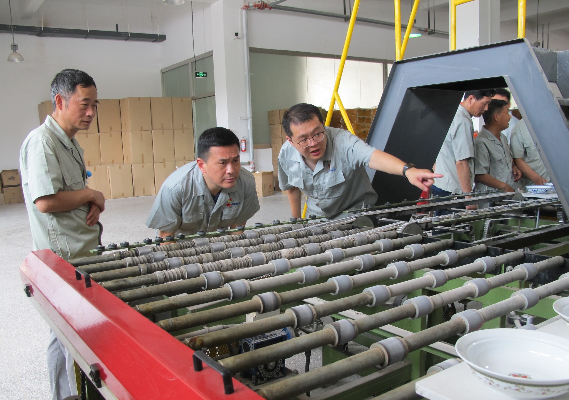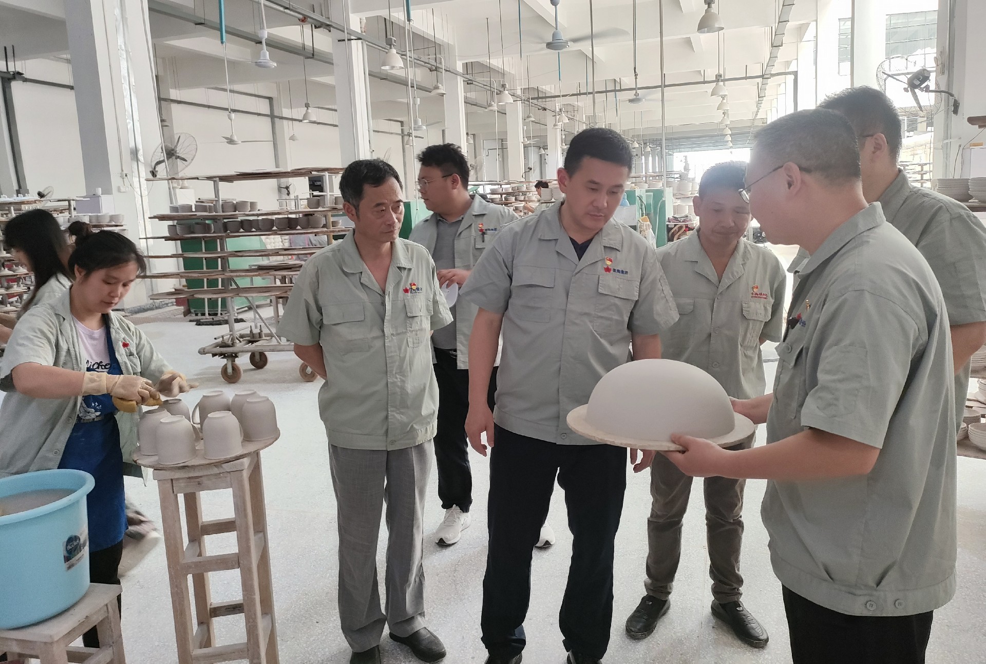 在生產(chǎn)車間調(diào)研中,鄧景揚(yáng)先后下到各個(gè)生產(chǎn)工序現(xiàn)場,從原料、模型、成型、燒煉到彩繪車間,對(duì)每個(gè)工序都進(jìn)行了詳細(xì)了解,重點(diǎn)了解了紅葉一廠的整體生產(chǎn)能力及現(xiàn)狀。