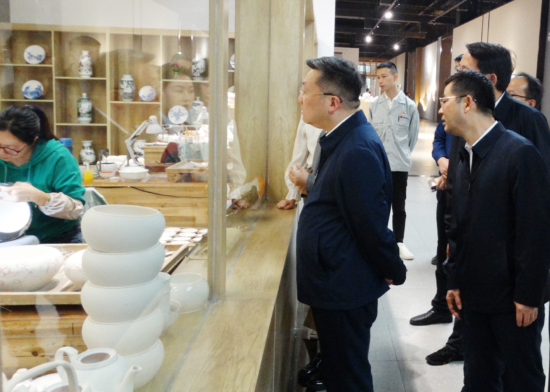 10月19日下午,長沙市委常委、宣傳部部長陳澎一行到景陶集團(tuán)考察,長沙市委宣傳部分管日常工作的副部長、市新聞出版局局長周海毅,市委宣傳部部務(wù)會(huì)成員劉玉龍,馬欄山視頻文創(chuàng)園黨工委書記曾雄,望城區(qū)委常委、宣傳部部長陳曠,市委宣傳部辦公室主任陳敏,市委宣傳部政研室主任賀明明,市委宣傳部文產(chǎn)處處長王青,市委宣傳部版權(quán)處處長譚曉丹,市委宣傳部干部處處長王林平,市委宣傳部辦公室副主任劉斌,市委網(wǎng)信辦綜合處副處長韓勇隨同,景德鎮(zhèn)市委宣傳部常務(wù)副部長董軍發(fā)陪同,景陶集團(tuán)黨委委員胡軼接待。