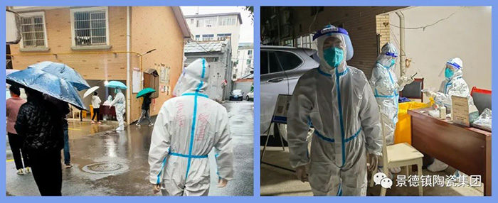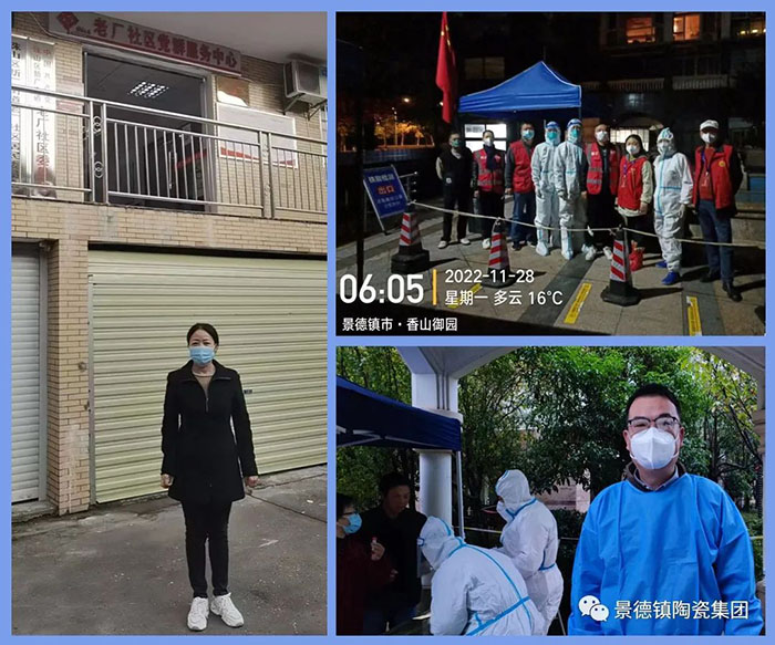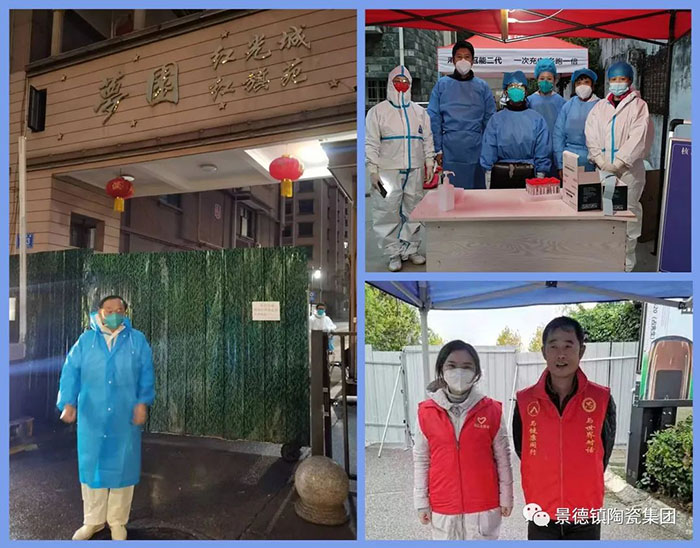 班子成員靠前指揮、科學(xué)調(diào)度、干在一線。景陶集團(tuán)黨委書記、董事長周敏建既是集團(tuán)公司疫情防控工作總指揮,又是所在社區(qū)居住樓樓長,同時(shí),還以黨員志愿者身份,每天堅(jiān)守在防疫一線。