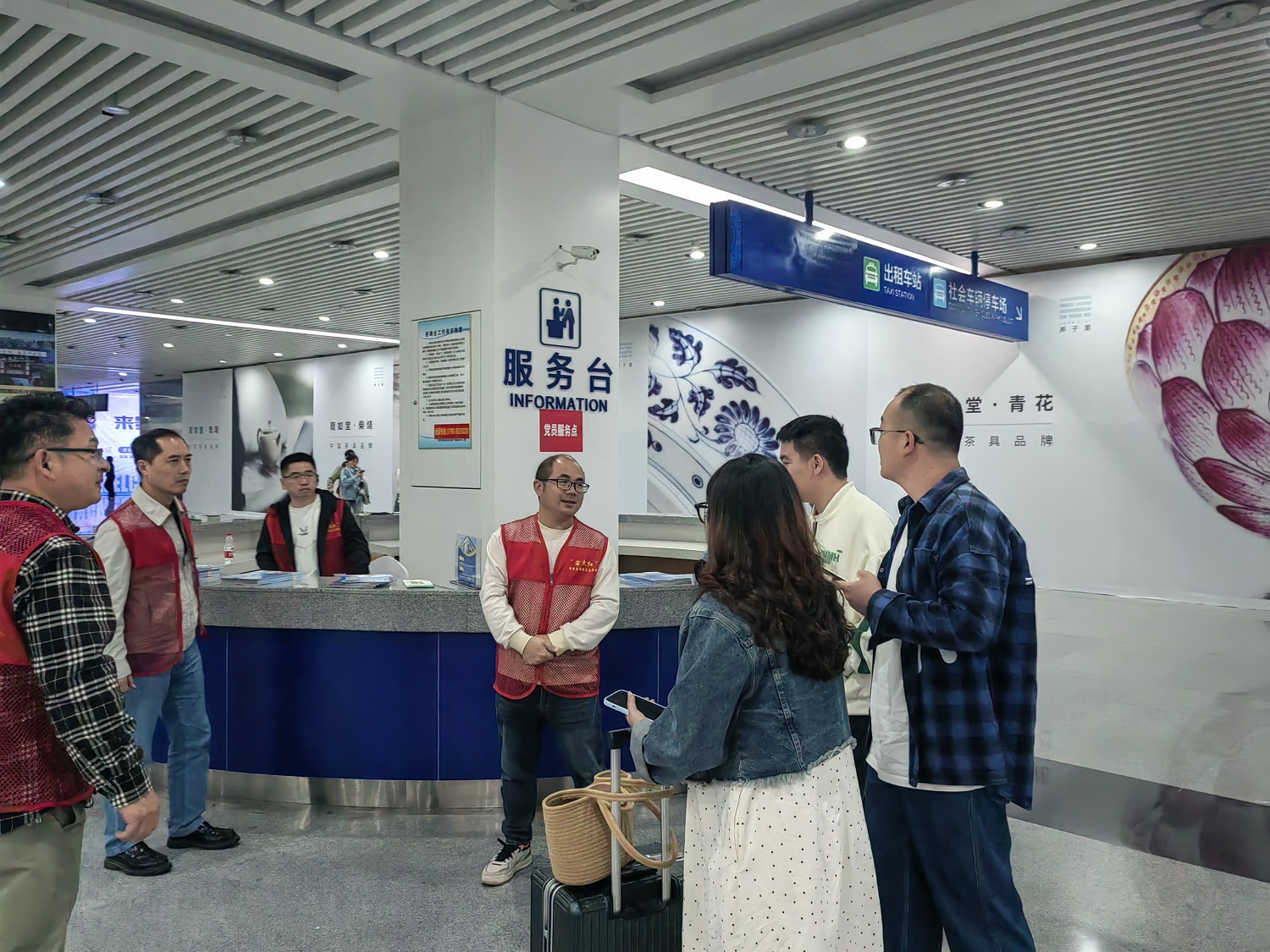 4月30日,五一假期前夕,景陶集團(tuán)組織70多名黨員志愿者參加市“窯火紅”黨員志愿服務(wù)活動(dòng)。他們身穿紅馬甲,忙碌穿梭在景德鎮(zhèn)北站南廣場,北廣場和羅家飛機(jī)場的旅客中,為來景游客指引路線,提行李,推介美食美景美宿,引導(dǎo)車輛有序停放等,送上熱忱暖心的服務(wù),流動(dòng)的紅馬甲成為一道靚麗的“風(fēng)景線"。