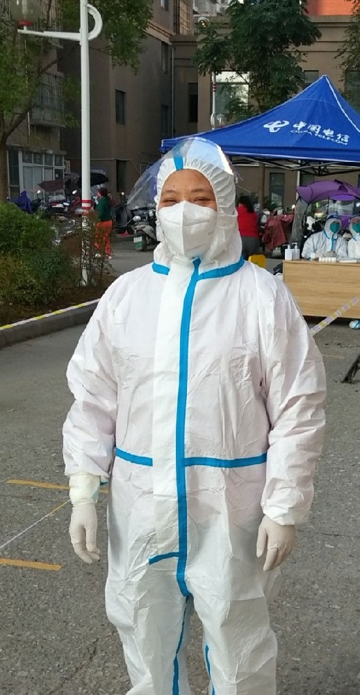 每天早上的鬧鐘固定設(shè)在在4:30分,鈴聲想起,夫妻二人便起床洗漱吃早餐,5點(diǎn)就趕到社區(qū)防疫崗位,有條不紊的穿戴好防護(hù)服,為全員核酸做好準(zhǔn)備。當(dāng)醫(yī)護(hù)人員開始檢測(cè)的時(shí)候,她們夫婦便在核酸檢測(cè)隊(duì)伍周圍做好居民引導(dǎo),維護(hù)隊(duì)伍秩序,防止人員扎堆和核酸采集后的長時(shí)間滯留,每天采集的時(shí)間都是五六個(gè)小時(shí),她們都會(huì)認(rèn)真負(fù)責(zé)的堅(jiān)守到隊(duì)伍結(jié)束。大半天核酸采集完成,口干舌燥不說,連喝水如廁等生活細(xì)節(jié)都要嚴(yán)格遵守防疫措施,在核酸采集地維護(hù)秩序每天不知不覺也達(dá)到兩萬步。